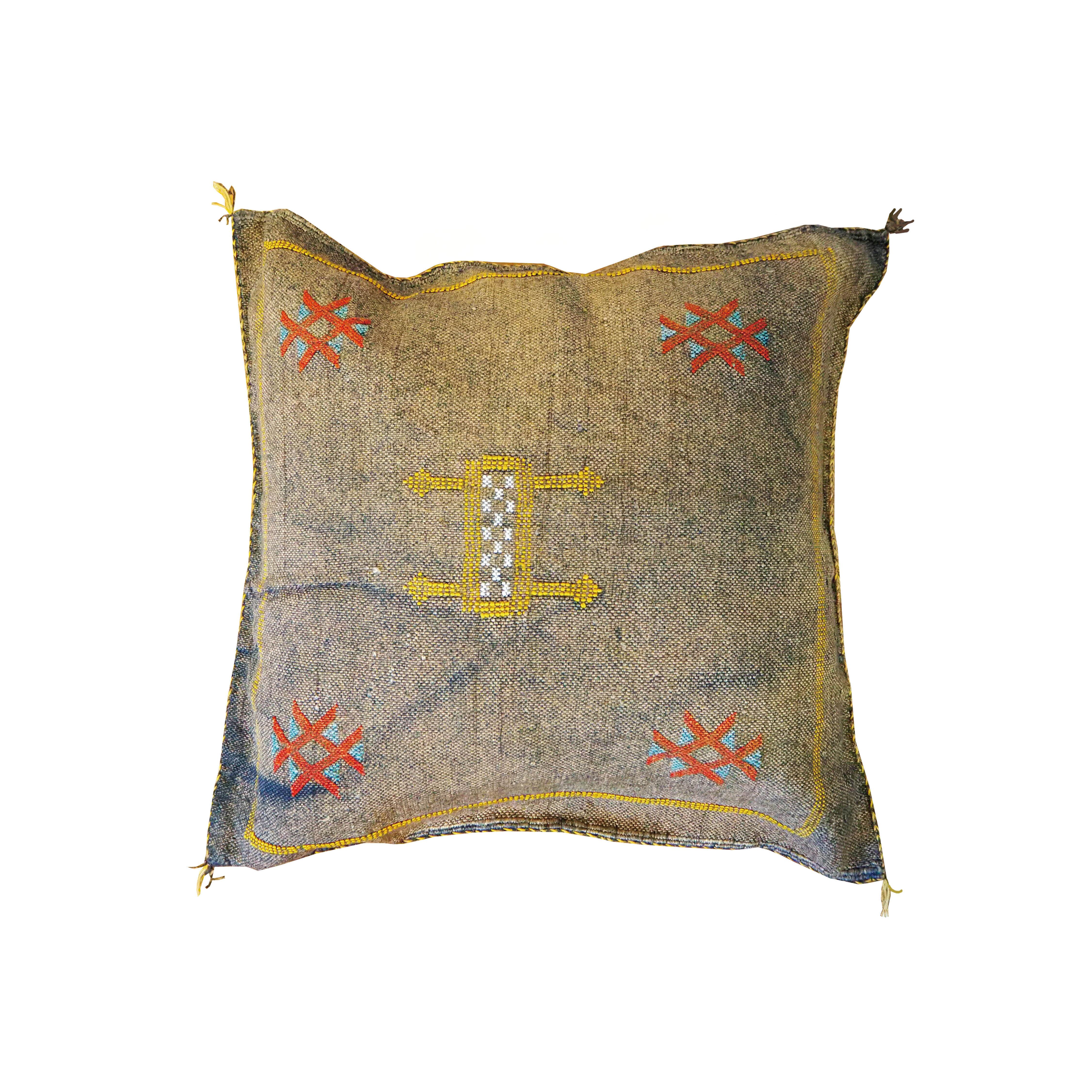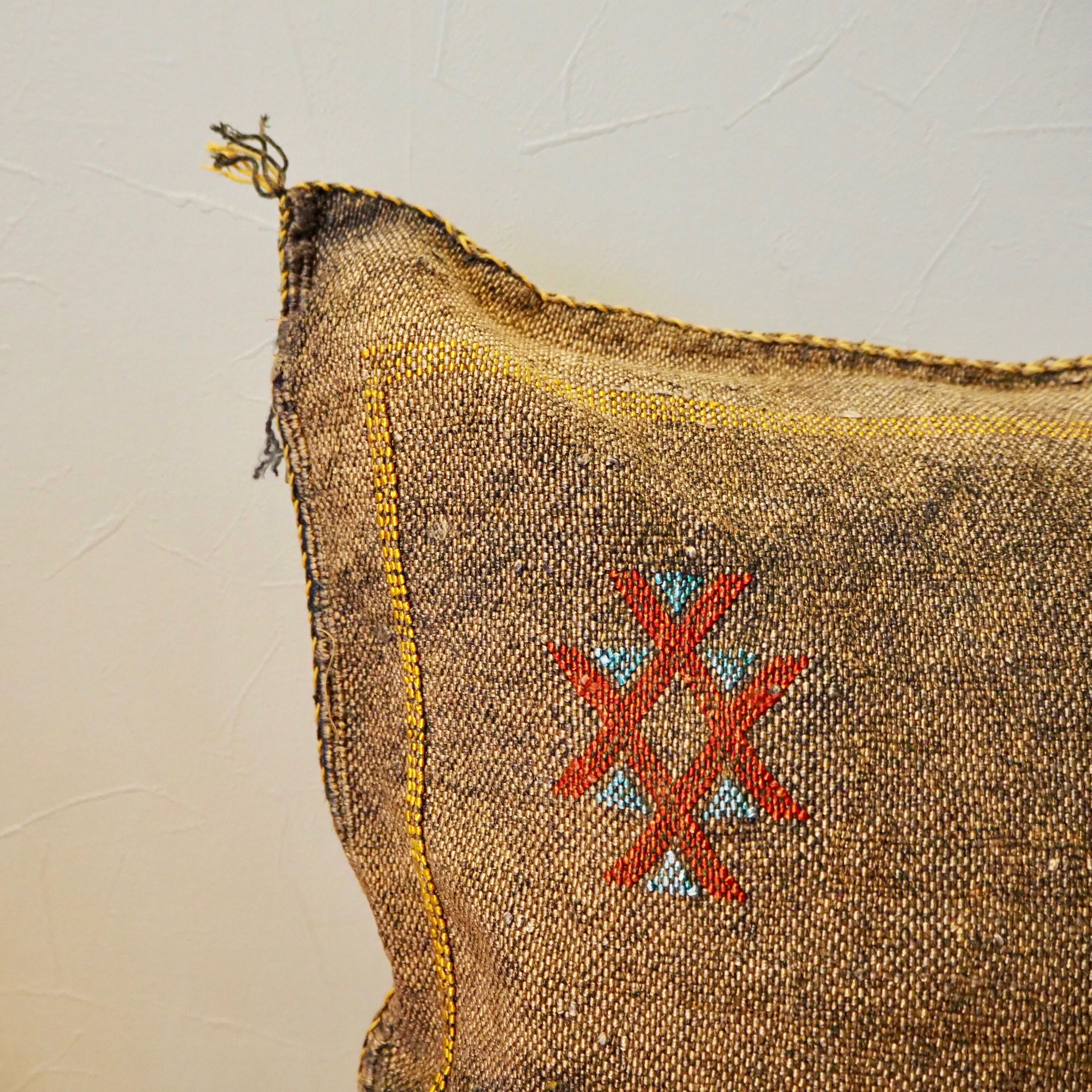 モロッコのベルベル人の伝統的な刺繍が施された手織りのクッションカバー。