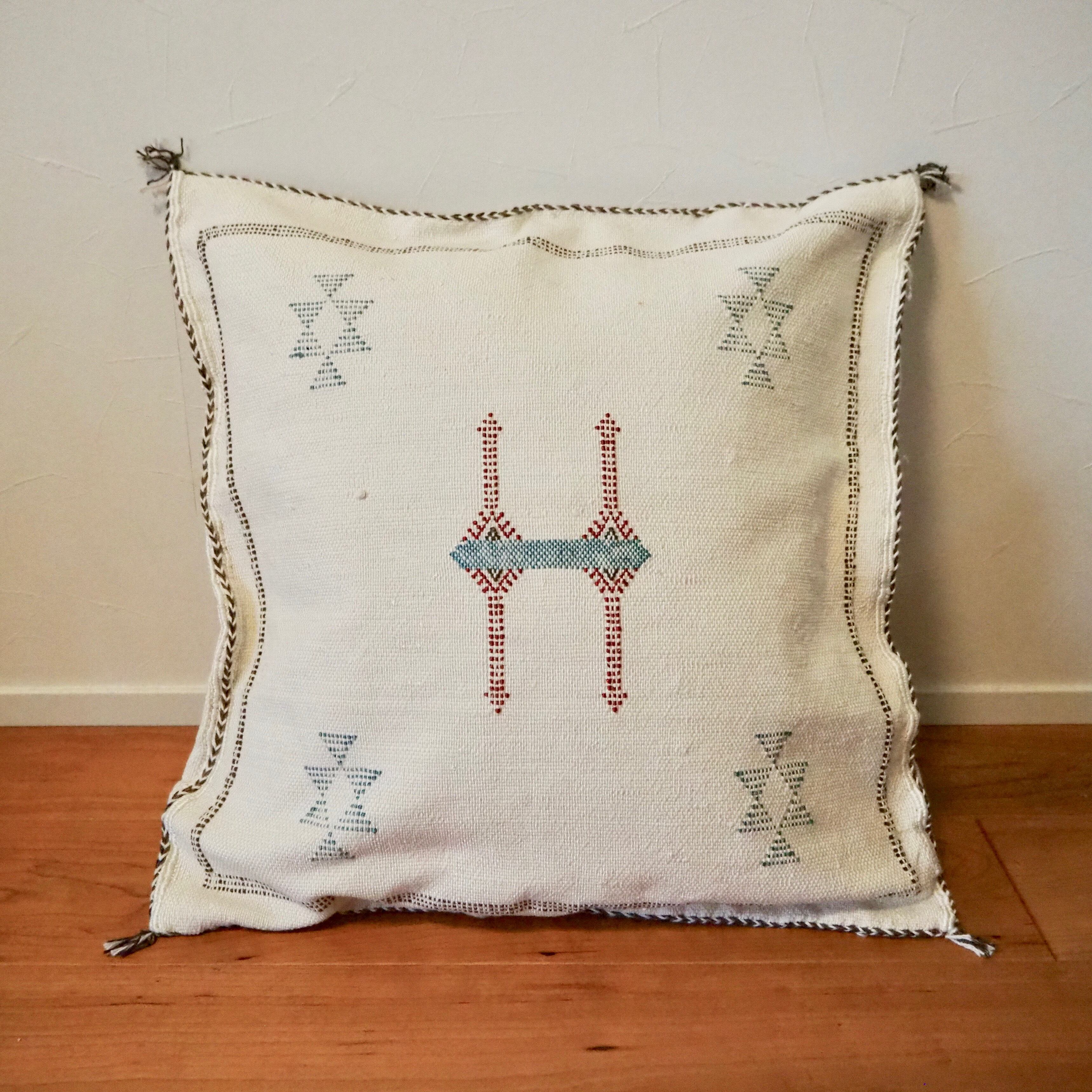 モロッコのベルベル人の伝統的な刺繍が施された手織りのクッションカバー。