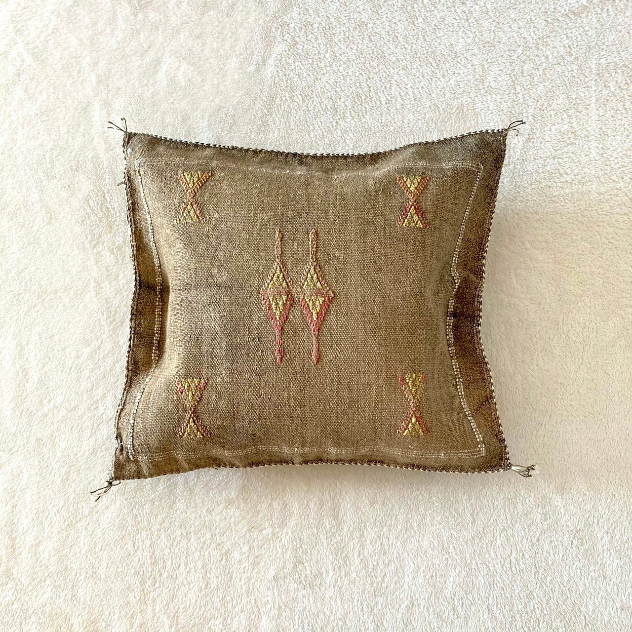 モロッコのベルベル人の伝統的な刺繍が施された手織りのクッションカバー。