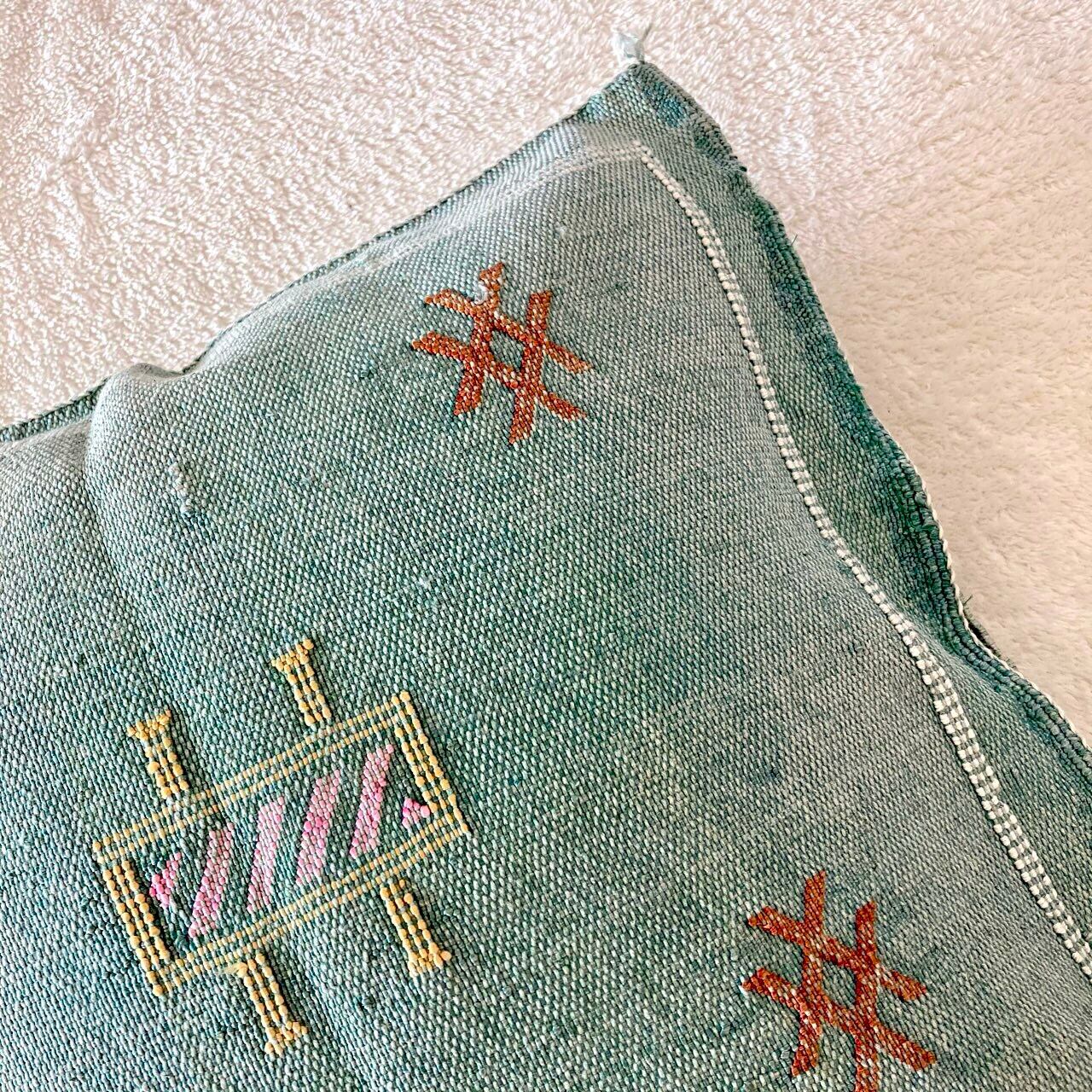 モロッコのベルベル人の伝統的な刺繍が施された手織りのクッションカバー。