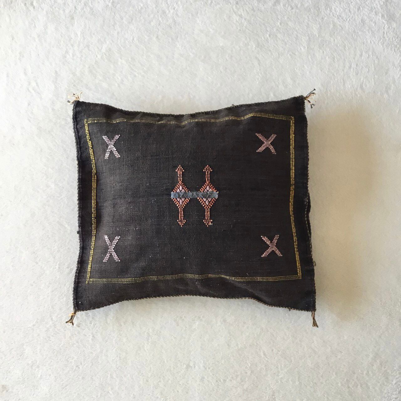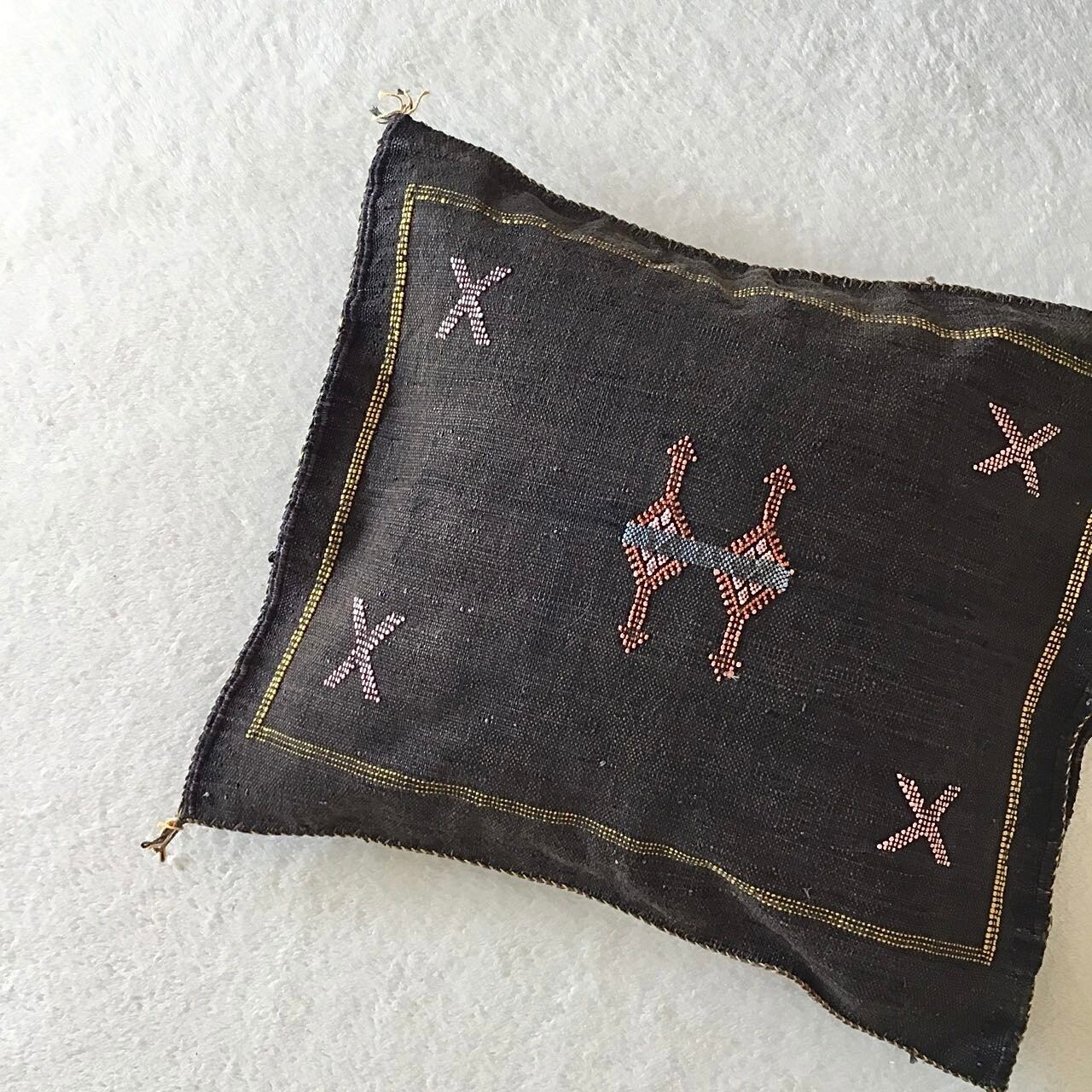 モロッコのベルベル人の伝統的な刺繍が施された手織りのクッションカバー。