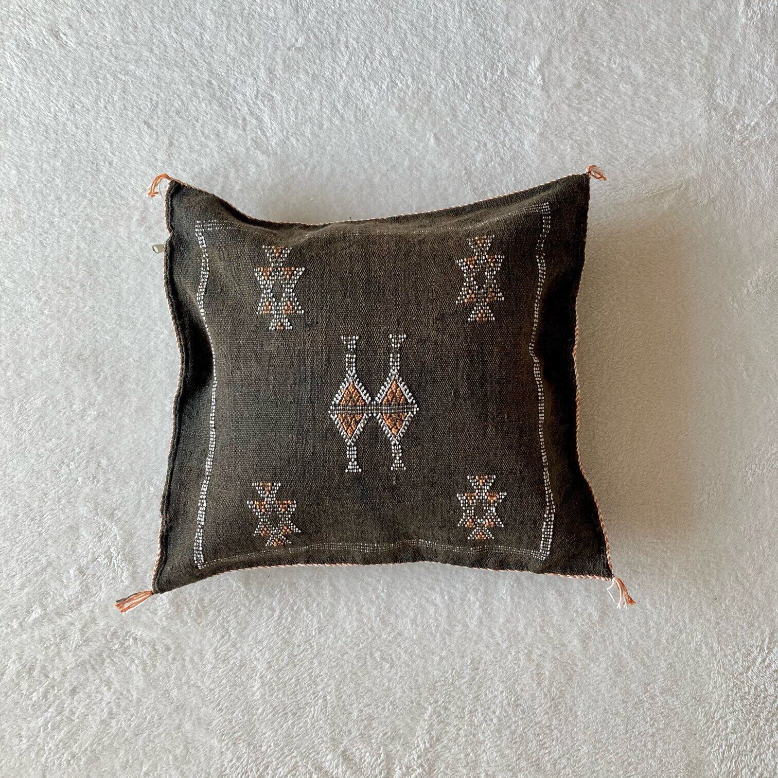 モロッコのベルベル人の伝統的な刺繍が施された手織りのクッションカバー。