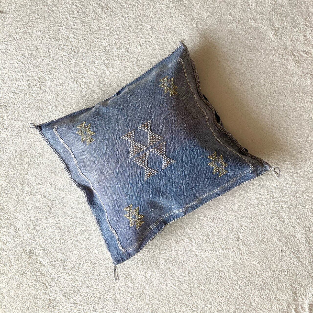 モロッコのベルベル人の伝統的な刺繍が施された手織りのクッションカバー。